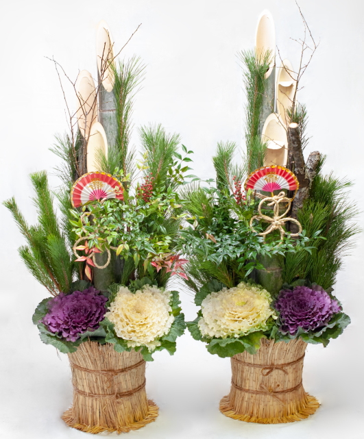 ●葉牡丹……花の少ない寒い時期に、葉の色で楽しませてくれる葉牡丹。幾重にも重なった葉が「吉事を重ねる」と言い、縁起が良いとされてきました。一般的には縁起の良い紅白のふたつを使って門松を彩ります。